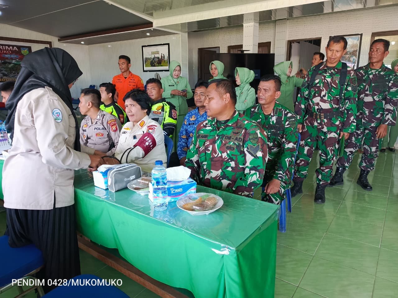 Dalam acara ini turut dihadiri oleh, Komandan Kodim 0428/Mukomuko yang diwakili oleh, Pasi Intel Kodim 0428/Mukomuko Lettu Inf Rahmad Dori, Ketua Persit Kartika Chandra Kirana LII Kodim 0428/Mukomuko, Danramil 428-01/Mukomuko, Anggota Kodim 0428/Mukomuko, Anggota Polres Kab. Mukomuko, Anggota Basarnas Kab. Mukomuko, Anggota Satpol PP Kab. Mukomuko, Tim Penyadap (Aftap) RSUD Kab. Mukomuko, PMI Kab. Mukomuko.