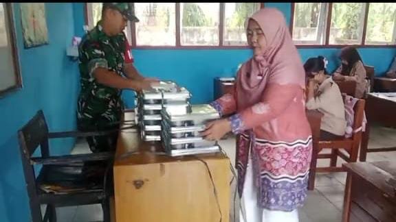 Mtrommnews.comMukomuko – Kodim 0428/Mukomuko terus melakukan monitoring pelaksanaan Makan Bergizi Gratis (MBG). Upaya ini untuk mendorong kesuksesan pelaksanaan program Makan Bergizi Gratis yang digagas Presiden Prabowo Subianto terus dilakukan.Foto : Dewan guru membagikan makan siang bergizi gratis